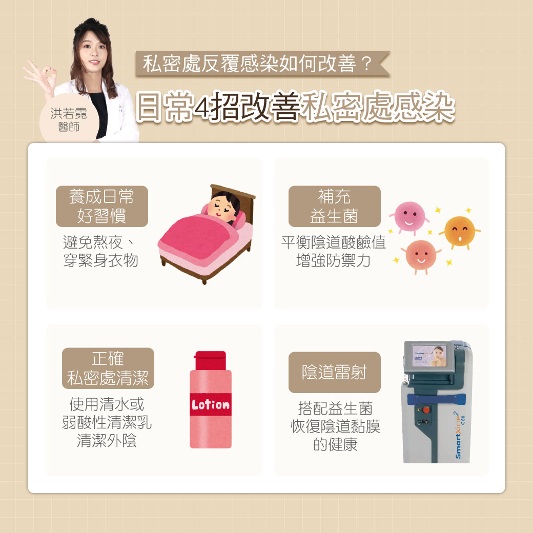 洪若霓醫師指出,針對私密處感染,最有效的應對方法是⌜預防勝於治療⌟!因此,改善私密處感染問題,會建議從日常習慣開始逐步做起!