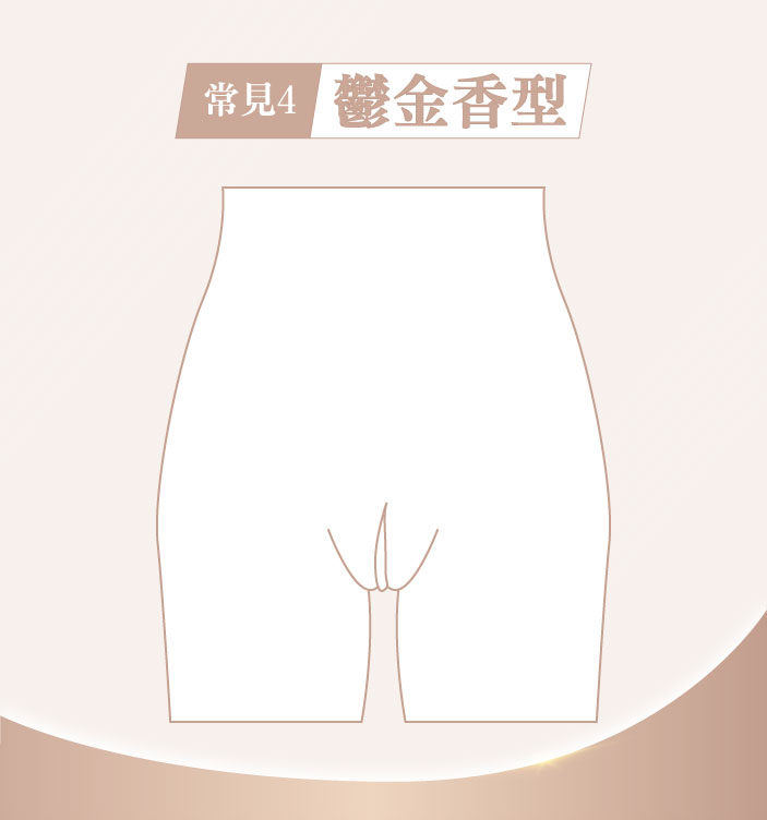 這類型的私密處形狀比較少見,外觀上大陰唇能完整包覆小陰唇,整體外觀平順且緊密貼合,看起來就像「一線」般整齊,也是大眾常討論的「一線鮑」。由於無小陰唇外露的問題,通常較不易因摩擦造成不適,在功能性面向也是較舒適的私密處狀態。